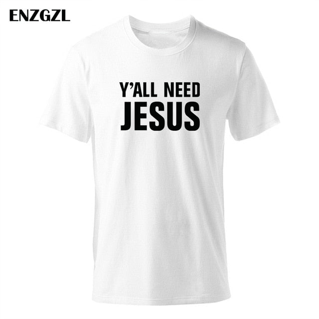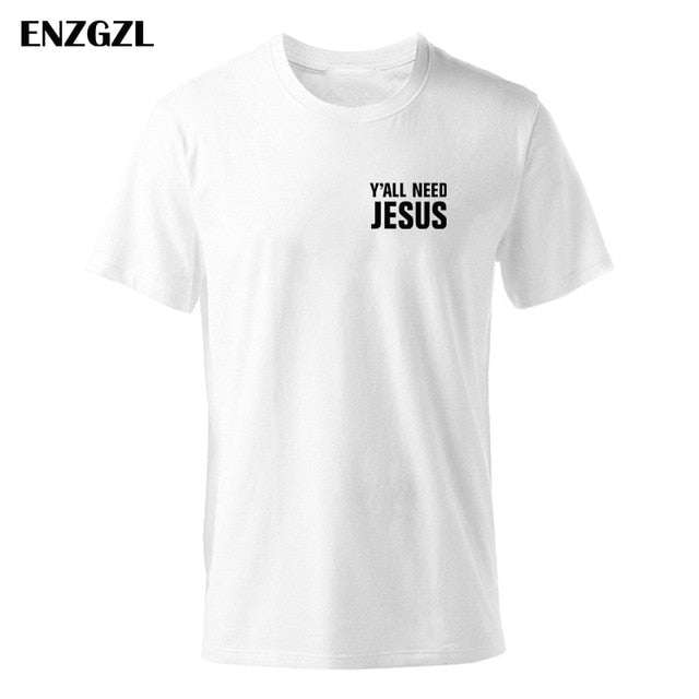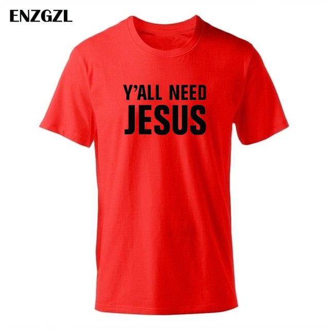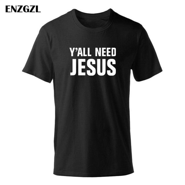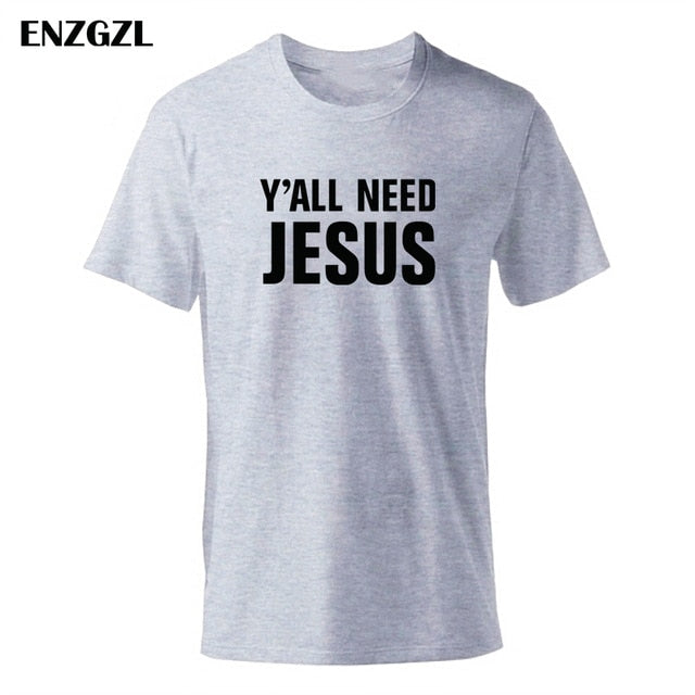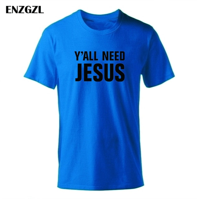 2019 T Shirt Mens Summer Tees Boys Male T-Shirts Tops 100% cotton Y'all Need Jesus tshirt Christian church youth Worship clothes